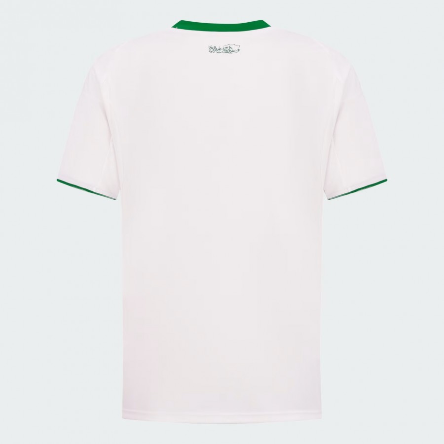 The Al Ahli FC away kit represents the balance between honoring the club's history and a clean design to meet the demands of new football fans, both in style and function. Inspired by 78-79 home kit, a single palm's leaf cross the chest, serving as a bridge between the eras. The kit pays tribute to the tradition of the club in a white base execution with club's classic green elements; the new club's logo complete the kit reminding everyone while the game evolves, the core values and pride of the club remain constant. Created for comfortable support, this football shirt comes with soft fabric and moisture-managing AEROREADY.