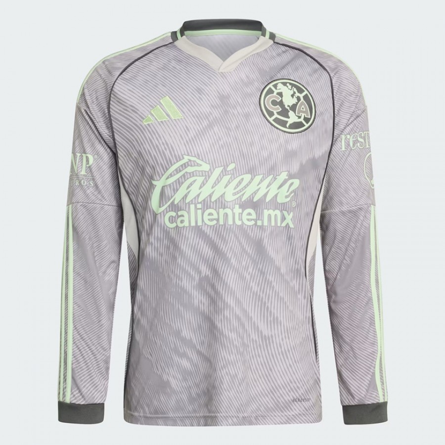 The 25-26 Club America Mens Third Long Sleeve Jersey is an ode to the iconic Coloso and their passionate supporters. Crafted with thoughtful attention to detail, it's designed for those who live and breathe the beautiful game. Made with interlock fabric, this jersey offers durability and a soft feel against the skin. The henley neckline adds a modern twist to the classic design, while the woven club crest adds an extra touch of authenticity, making it a must-have for fans. Integrated Aeroready technology is designed to manage your body's sweat, helping you feel dry and comfortable for longer so you can focus on the game. Side mesh inserts support ventilation for a fresh feel, even during intense matches. Whether you're cheering from the stands or gathered with friends, this jersey is your go-to companion. With adidas, it's more than just clothing. It's a way of life.it's more than just clothing. It's a way of life.