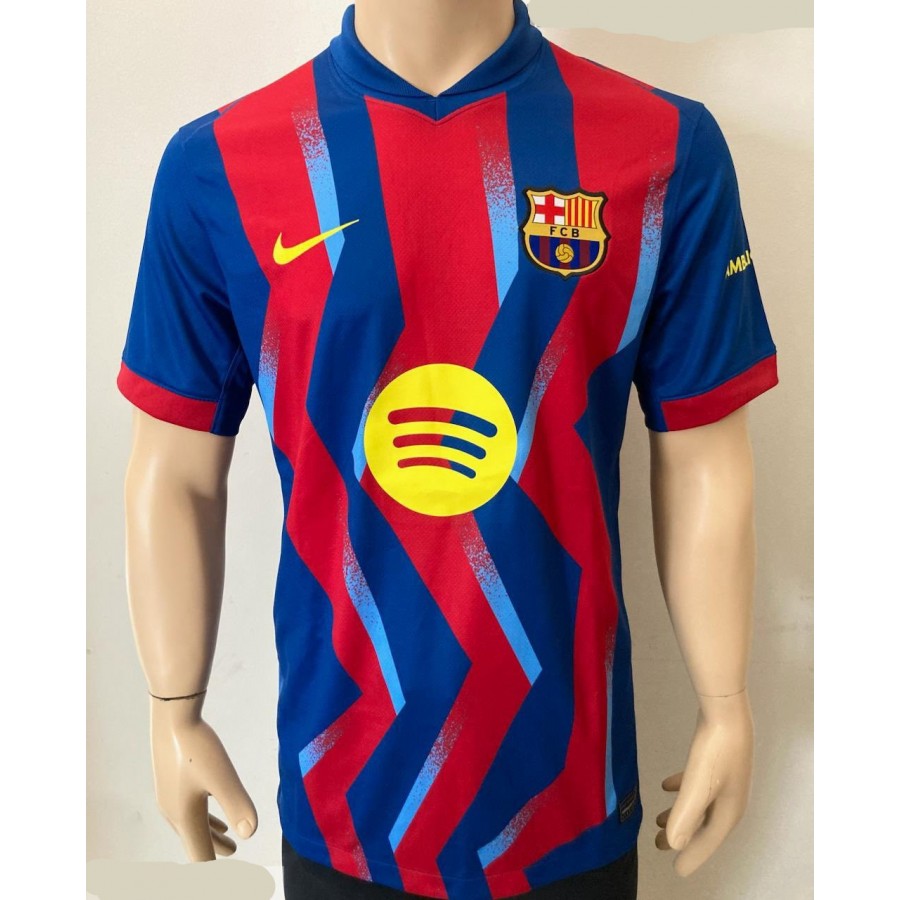The Nike FC Barcelona 2025-2026 'El Clásico' fourth shirt was the club's first-ever jersey specifically branded for their clashes with Real Madrid. Color-wise, the Nike Barça 2025-2026 fourth shirt officially combines Gym Blue, Salsa Red, and Opti Yellow.
