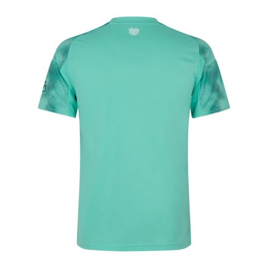 The Adidas FC Copenhagen Mens Third Jersey 25-26 comes in a light mint green base with subtle textured shading across the chest and shoulders. Dark teal logos, including the club crest, Adidas badge, and sponsor Unibet, provide contrast. White Adidas stripes on the shoulders complete the look of the Copenhagen 25-26 third kit.