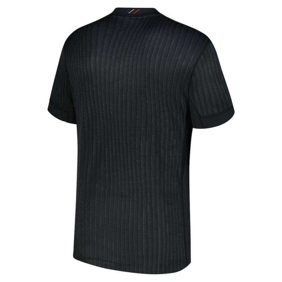 Paris Saint-Germain and Jordan Brand unveil the Club's fourth kit for the 2025–2026 season. Inspired by the tradition of Parisian couture ateliers, it embodies the meeting point of elegance, creativity, and performance. From the pitch to the design studio, PSG and Jordan share the same art of play and precision. Crafted with passion and meticulousness, the new jersey expresses the power of detail and the balance between heritage craftsmanship and performance. Predominantly black, with shades of anthracite grey and subtle touches of pink, the new jersey features a sleek, powerful look defined by a central red stripe — a subtle, contemporary nod to one of the Club's original designs. A line that becomes a symbol of style, vision, and precision — like one drawn, traced, and refined on a workshop pattern or a chalkboard. From the refined collar to the visible stitching, every detail has been designed to merge elegance and technical excellence. Used for the first time, the Cross-Dye technique adds subtle contrasts and unique textural effects, enhancing the premium character of each piece.
