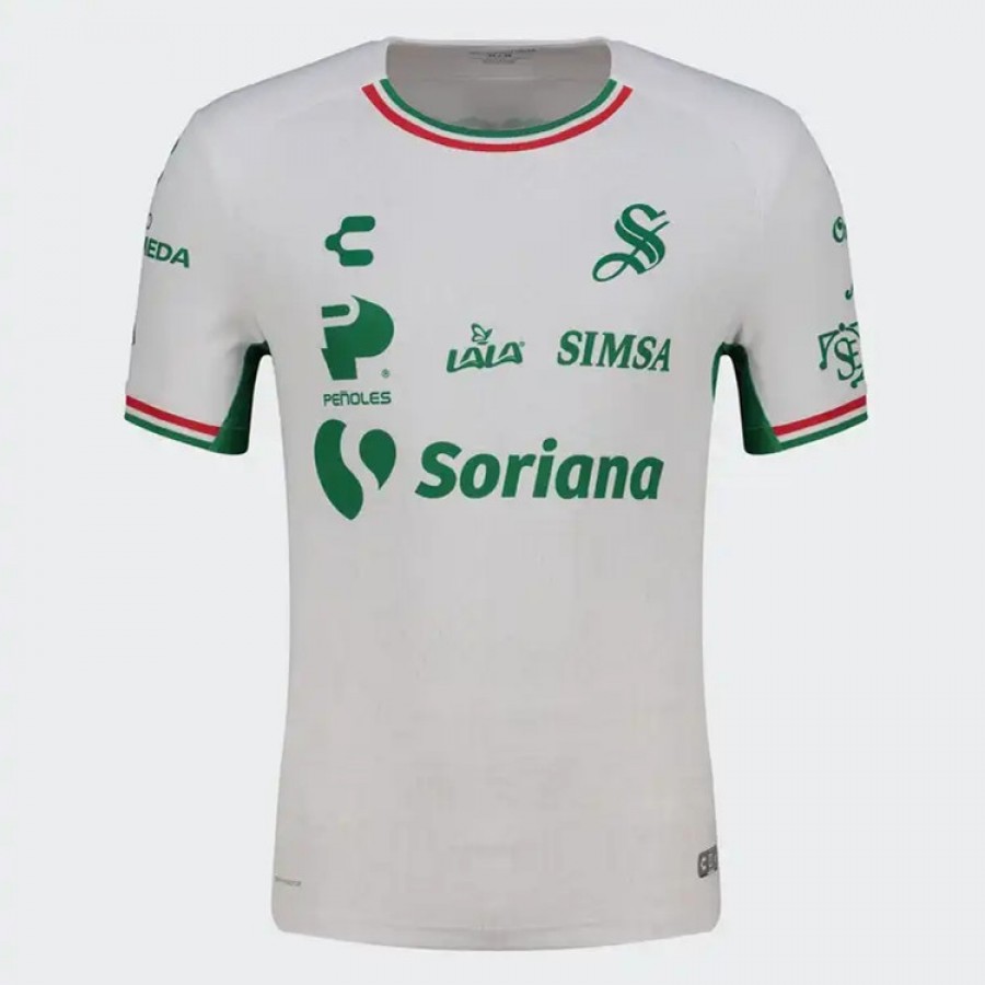 The countdown begins with Charly and the Third Kit 25-26 collection, on the road to the greatest soccer party of all time. Discover the tricolor designs that will elevate Mexican and pambolero pride to another level. Introducing the Santos Laguna Charly Mens Third Jersey 25-26, its captivating graphics, shows pre-Hispanic figures that represent the flora and fauna of Mexico paying tribute to our roots and the deep connection between soccer and our culture, a garment with Mexican touches created to accompany you during the closing of the season and bring you closer to live the spirit of the World Cup. With a regular fit in white, this jersey features a round neck with piping on the shoulders, simulating a raglan sleeve that extends in one piece from the contrasting collar with a tricolor rib, the shield in transfer material with the iconic “S” characteristic of Santos; the mesh areas on the sides and back will favor ventilation during any physical activity. Designed for true soccer fans, this model is made of 100% polyester and incorporates Dry Factor technology, which helps keep you dry; UV Block, which will protect you from the sun's rays; and Nano Guard, which will prevent the proliferation of bacteria. It also includes special packaging, ideal for collectors or for those who want to keep this garment as a symbol of Guerrero and Mexican pride. The Third Kit 25-26 collection evokes a patriotic and soccer feeling, designed for those who live with intensity every play. Dress the Mexican greatness, represent with honor the Lagunera strength!