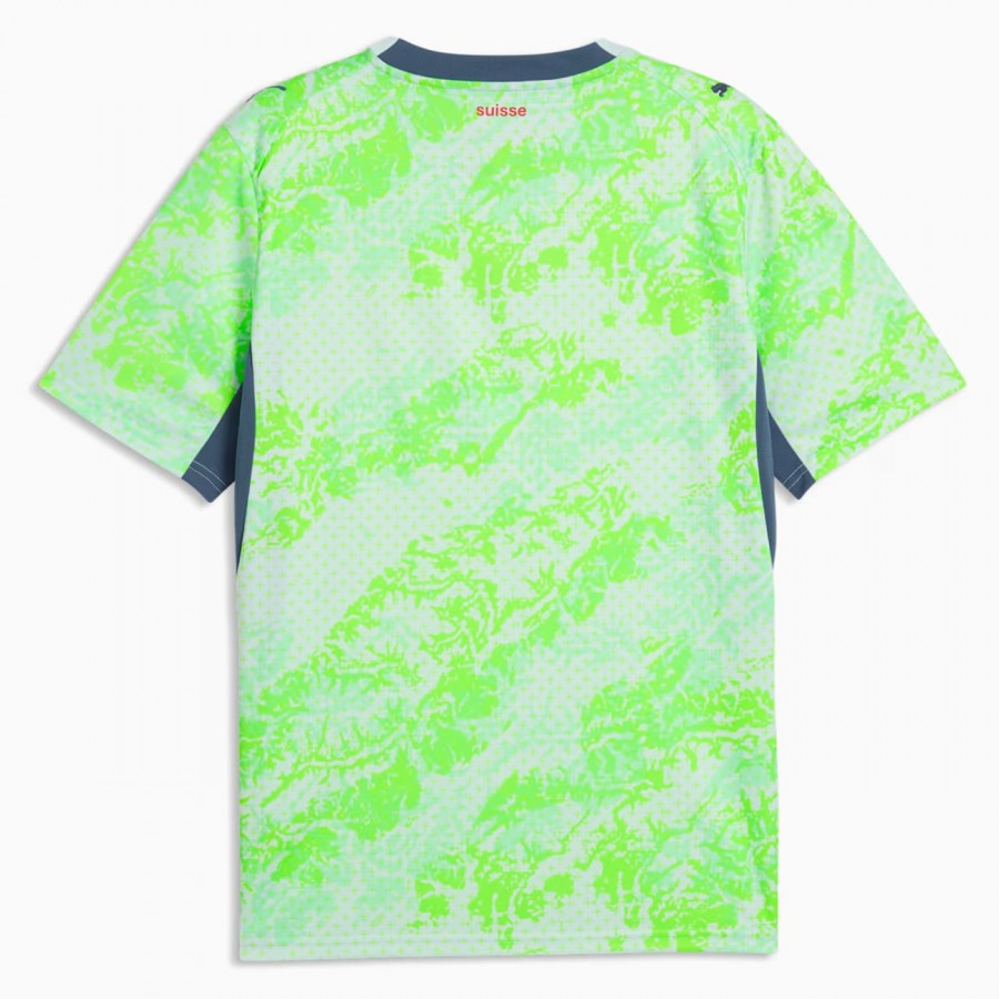 Switzerland's 2026 Away Kit channels Swiss precision in a white-and-turquoise topographic design that continues the passport-inspired detailing of the Home Kit. This Replica jersey pairs the same match-worn look with a casual silhouette, details, and materials, ideal for both game day and everyday wear.