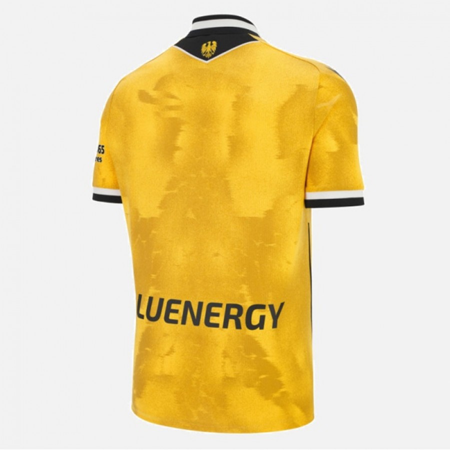 Emotion and style unite in the Udinese Calcio 2025/26 third jersey. With its vibrant golden yellow, elegant polo collar, and sublimated print, this jersey is a symbol of pride. The Macron Hero and club logos in soft silicone accentuate the details, while the eco-micromesh back panel ensures optimal breathability. Wear the phrase "Io sono Friuli Venezia Giulia" with pride. Get ready to step onto the pitch and show your passion.