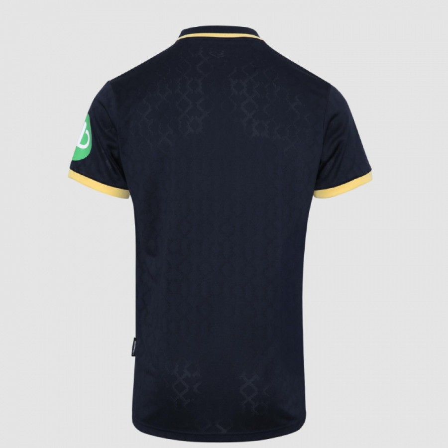 Our third kit features a clean navy and gold palette - navy nodding to our Thames Ironworks roots, and gold representing the iron of the Hammers. Crafted with a custom jacquard fabric, fold-over collar, and gold-trimmed cuffs, it brings classic design into the modern era. The shirt features an oversized crossed Hammers crest, worn solo for the first time since the 1980s.